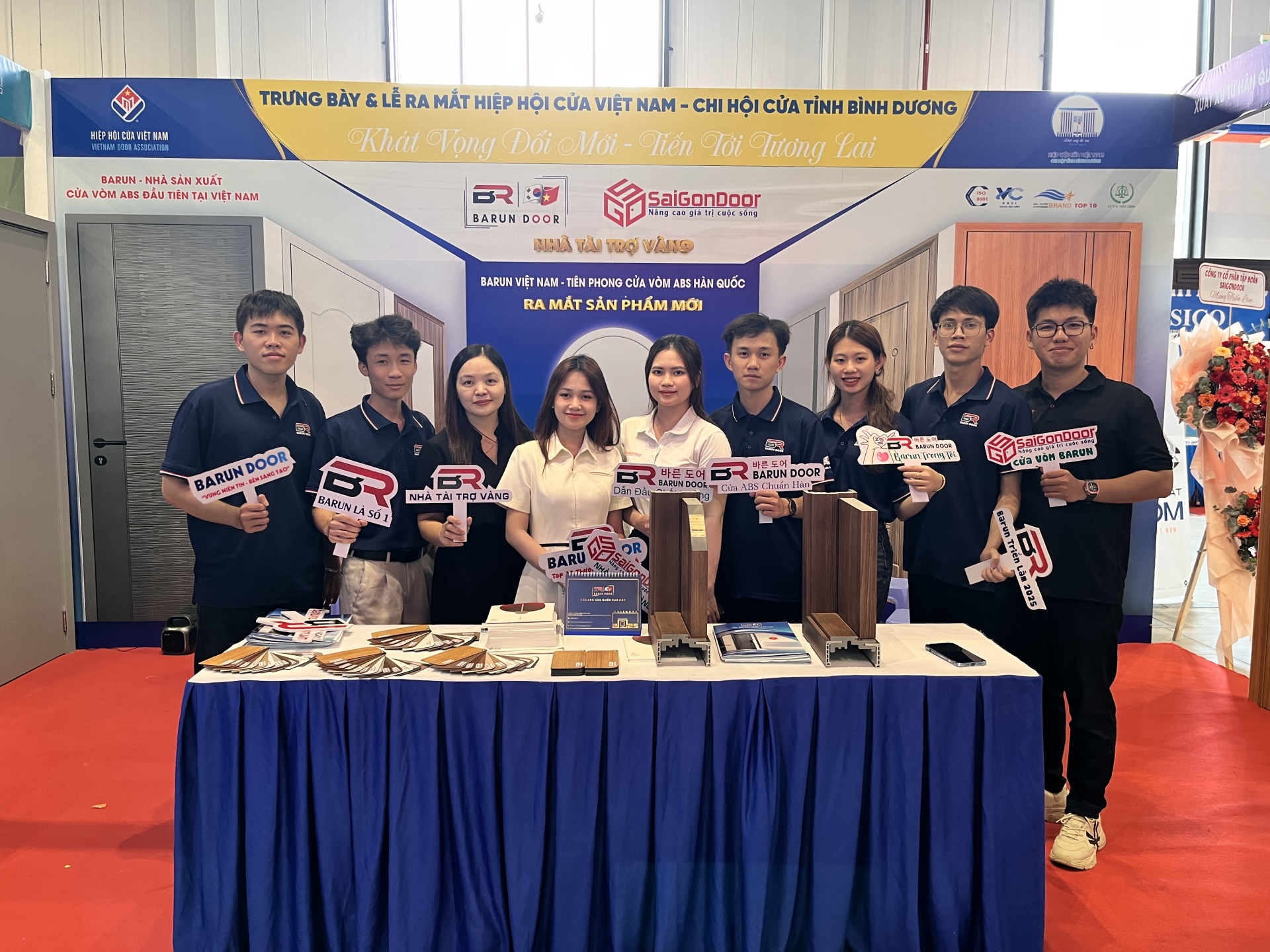 Tập thể nhân sự của Barun và SaiGonDoor tại gian hàng Triển Lãm.